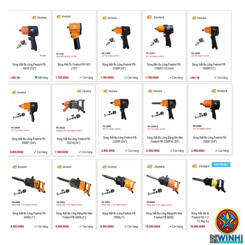 Từ khóa SEO gợi ý: súng xiết bulong Firebird, súng hơi Firebird, Firebird TW-1600, Firebird TW-880, dụng cụ khí nén Firebird.
